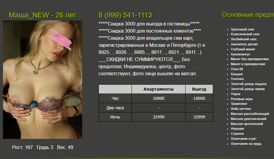 Короче, без лишних слов, рекомендую и попрошу не обижать, девушка действительно классная, а за 6 тыс/час даже не знаю, есть ли у нее конкуренты в нашем городе.