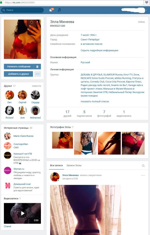 PS: Страницу в ВК удалили, но думаю в ближайшее время появится новая (она мне сама говорила что это нормальная для неё и регулярная практика).