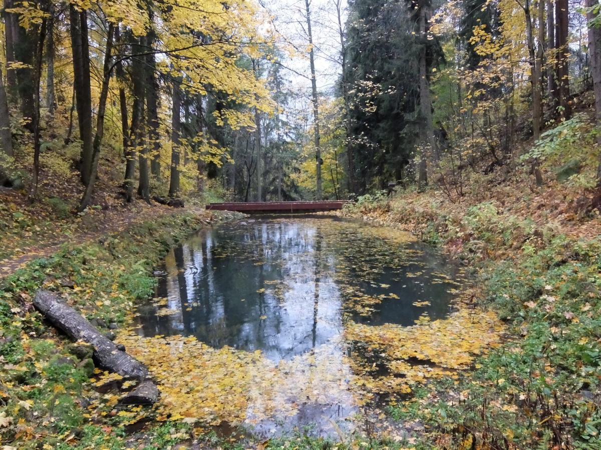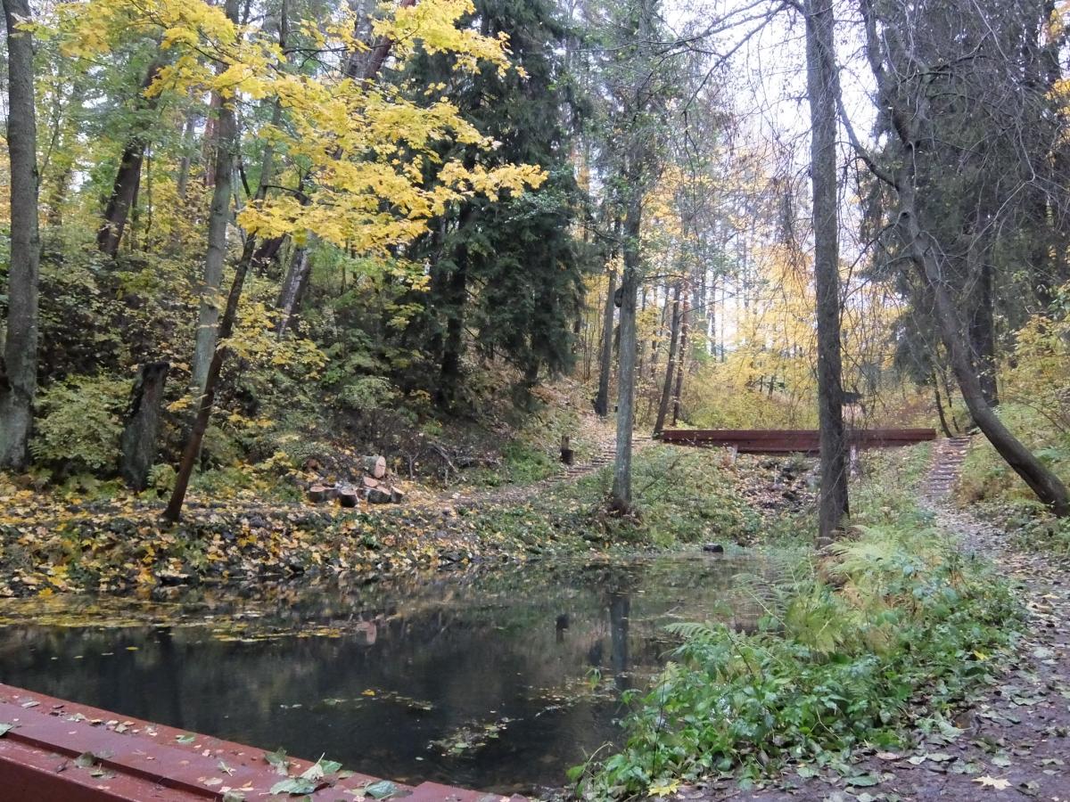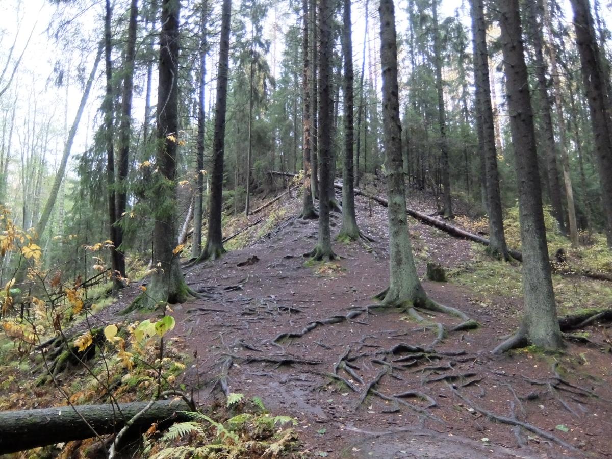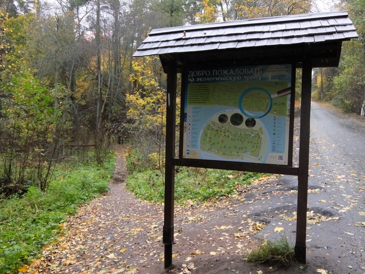 Пешеходный маршрут протяжённостью 2.8 км, по большей части с дощатым настилом. Входов насчитал четыре: два с Приморского шоссе, один с ул.Морская, и один с ул.Ломаная. Вход свободный, зашёл с Морской. На маршруте встречаются информационные стенды и лавки, ближе к выходу - одна стрёмная беседка. Листьев хуева туча именно от Морской, где обломки старинного парка купца И.И.Чижова с прудами и парка виллы Рено. Далее уже ельник с муравейниками, тоже вполне симпатичный. Тропа местами проходит по Литориновому уступу, так что аппетит за 2.5 часа нашуршал знатный! Вышел, и дотопал по нижнему до Русской Рыбалки (ок 2км), где в обязательном порядке испил литер светлого и 350 вотки с селёткой и огурцами! Вотка по ебанистическим ценам! Пивал обычную "Беленькую", на люксе (самую дешёвую) 300р/50гр.