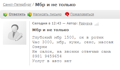 Квартира нормальная, не разруха. Хг в ванной была одна бутылка и то пустая. Полотенце выдано новое со шкафа, а вот простыня кажется не после каждого посетителя меняется и тапочки не предложены. Что по деве, присутсвует живот. Я бы сказал, что фигура близка к Валери но получше, однако контакт налаживает намного хуже, чем с Валери, чувствуется отстранненость все время. Что по процессу: мбр неплох, плотно, зубов не почувствовал, старается брать полностью, но 15 моих не смогла осилить, где-то 2-3 см не хватило до полного. Что касается анилингуса, то недурно и в приниципе продолжительно, я бы сказал, что на 7/10, без разврата, по-домашнему.