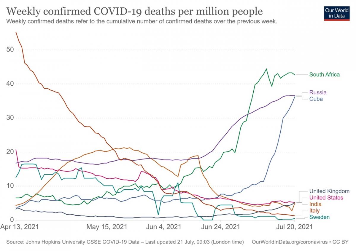 Вместе с тем, благодаря проводимой вакцинации населения число пациентов с тяжелой формой заболевания не выросло пропорционально числу инфицированных. За неделю не было зафиксировано ни одной смерти от коронавируса.
