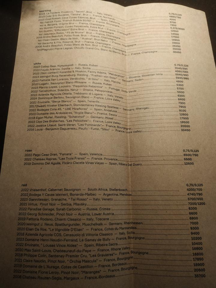 Два вида меню, как сейчас модно: дегустационный сет и а-ля карт.