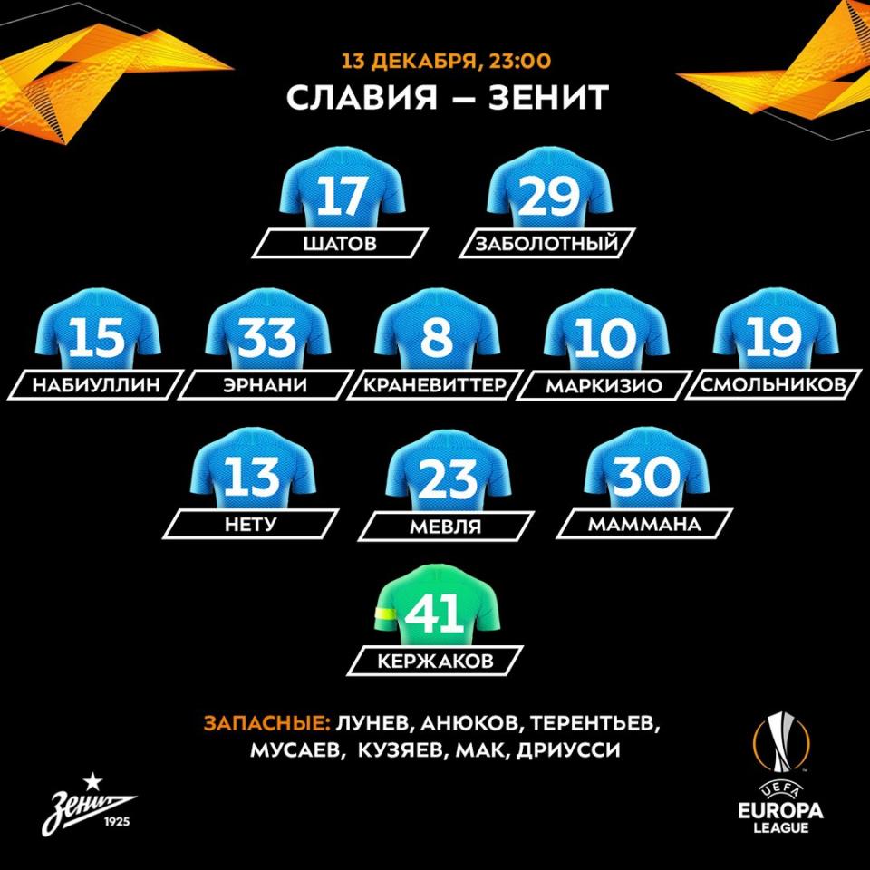 Наши выставили на Славию такой состав. Вместо Терентьева всеж Смольников